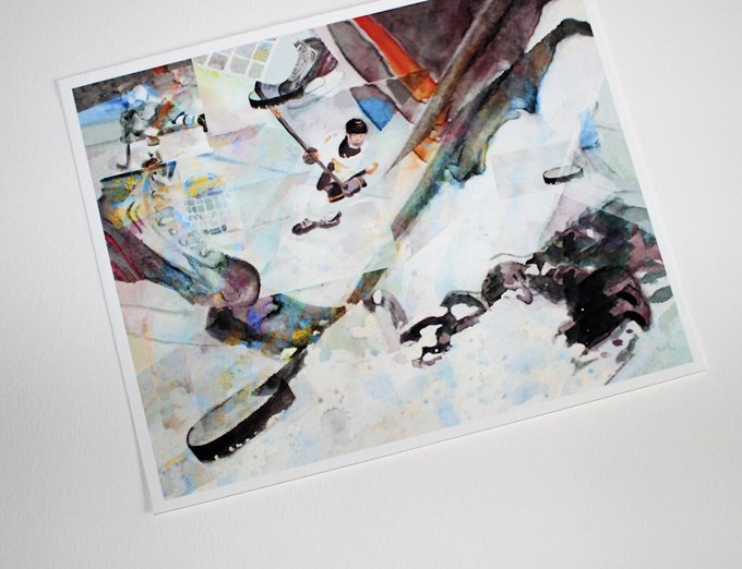 Hockey Stop Watercolor Collage Art Print #watercolorart #artprint #prints #collage #artwork #homedecorideas #kidsdecor #mancave #HockeyTwitter #icehockey #hockey #hockeymom #skate #ice #sports #TMTinsta #shopsmall #supportsmallbusinesses #etsyfinds etsy.com/SycamoreWoodSt…