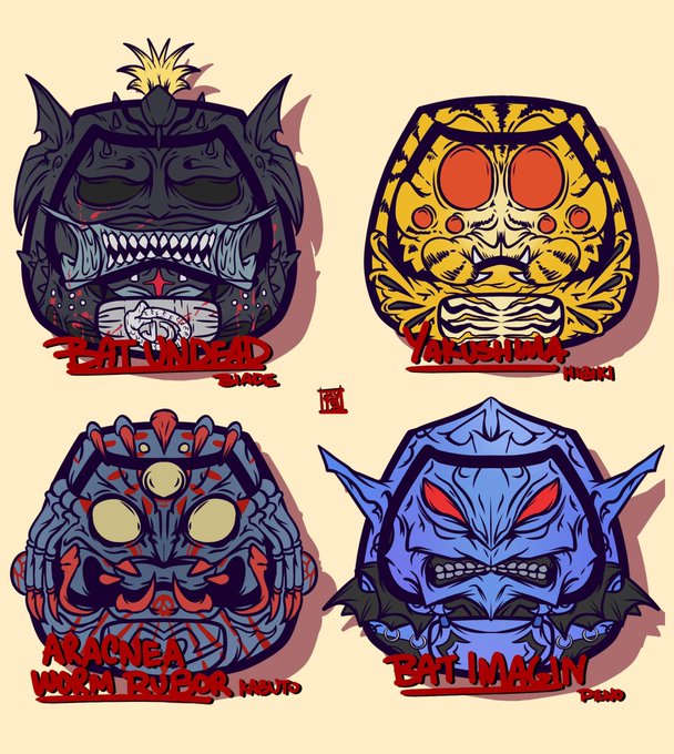 V-Raidā Daruma Set 5 @ByThe13th #art #doodle #drawing #fanart #daruma #達磨 #kamenrider #tokusatsu #仮面ライダー #batundead #バットアンデッド #tsuchigimo #ツチグモ #aracneawormrubor #アラクネアワームルボア #batimagin #バットイマジン