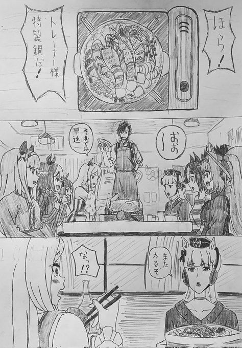 #TOMOのオリジナル漫画コーナー ウマ娘プリティーダービー 第8話 鍋パーティーするシーンにて マックイーンが先に伊勢海老を取ってしまう場面 漫画で描いてみました。 #ウマ娘プリティーダービー #漫画家志望さんと繋がりたい #絵描きさんと繫がりたい #イラスト好きな人と繋がりたい