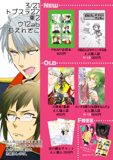 【トプステ27】おしながき #TOPOFTHESTAGE27 #アイドリッシュセ腐ン #とらみな #トウ悠 #ŹOOĻ #四葉環 #和泉一織 pixiv.net/artworks/97023…