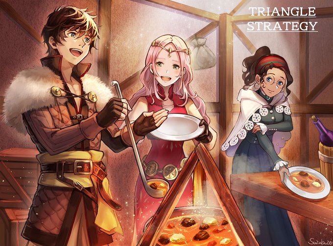 思い出のシーン悩んだ結果、3人でミートボールシチューを作る挿話を描かせて頂きました。 「誘ってくれた事が、その気持ちが嬉しい。準備が出来てないなら一緒に作ろう」というセリフがとてもセレノアらしくて好きです。 #トラスト1周年 #トライアングルストラテジー #TRIANGLESTRATEGY