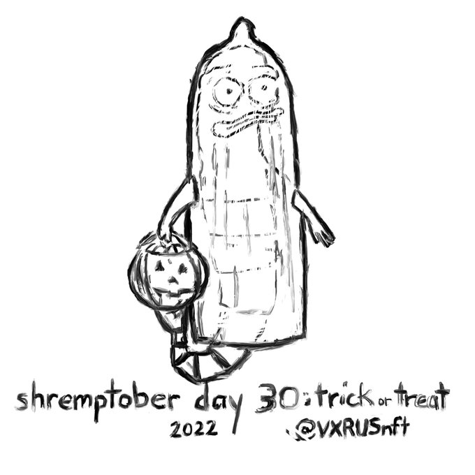 what costume is shremp wearing? hint: it's not a 👻 --- #shremptober day 30: #trick or treat @shrempin #inktober2022 --- #inktober2022day30 #shremptobervxrus 🍆🍤