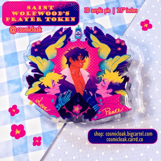 saint wolfwood pin- vash offering a little prayer to his fav priest🌼 glitter vinyl sticker version too ʃh0p 🔗in comments (rt💕) #TRIGUN #TRIGUN_STAMPEDE #vashwood