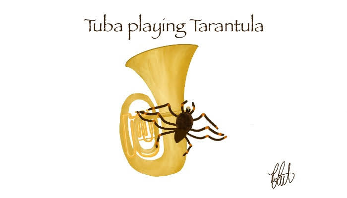 T is for Tuba @AnimalAlphabets #AnimalAlphabets #kidlit #illustration #kidlitart #drawing #musicalinstruments #spider #tuba