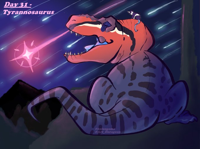 Day 31 - Tyrannosaurus ~ Large Tyrannosaur that inhabited North America during the Late Cretaceous. Tyrannosaurus was a large carnivorous dinosaur that was considered to be the king of the dinosaurs, due to it's incredible senses of smell and sight. #paleoart #Tyrannosaurus