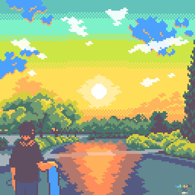 Towards City Evening Is a guy who like to take photo of beautiful view. @CactusInsane will never miss a chance when he see it. PS: Big props for him, because he helping me lot. #pixelart #illustration #T_MR2 #ArtistOnTwitter #イラスト #ドット絵 #retro #IndieGameDev