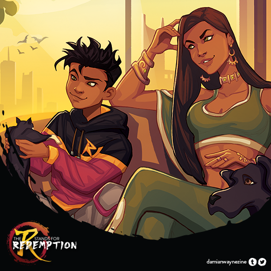 Here’s a preview of my piece for THE R STANDS FOR REDEMPTION: A DAMIAN WAYNE ZINE! I had an amazing time working on this project alongside so many talented artists and writers. 💚 #DamianWayne #TaliaAlGhul 🦇 PREORDERS ARE OPEN NOW 🦇 Check out @damianwaynezine for more info!