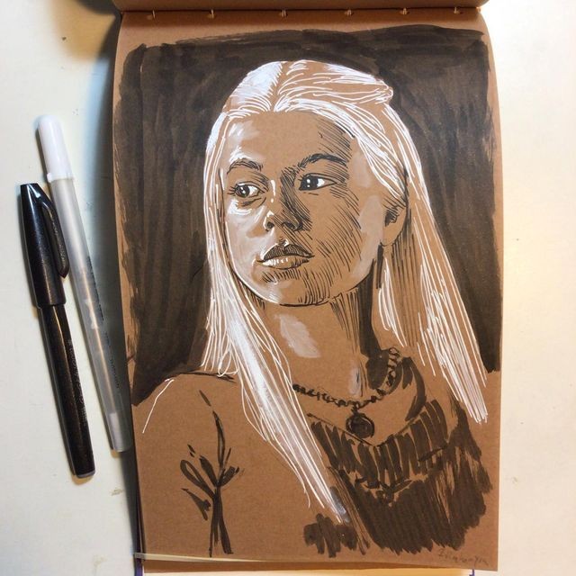Inktober 2022. Day 7, Rahenyra Targaryen @MillyAlcock @houseofthedragonhbo @aitarragona #inktober #inktober2022 #femtober #badassgirl #badasscharacter #portrait #inkportrait #ink #millyalcock #rahenyra #targaryen #houseofthedragon #drakarys