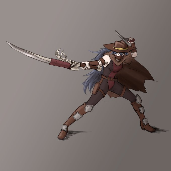 17 - Bone For today, here is Lucina dressed as Erron Black from Mortal Kombat. She wields a sword made from the arm of a Tarkatan. #swordtember #Swordtember2021 #bone #Lucina #FireEmblem #MortalKombat #ErronBlack #Tarkatan