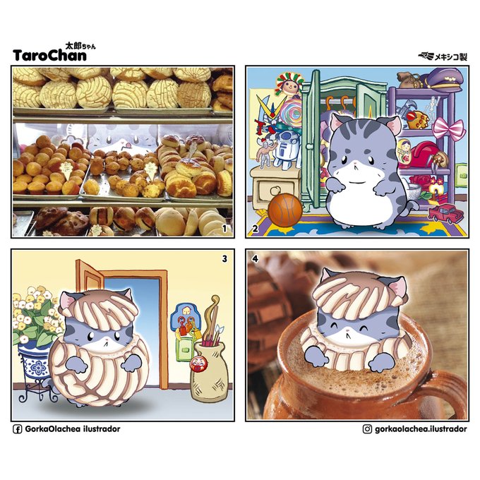 A TaroChan, el gatito cosplayer, se le antojo una rica Concha de Vainilla con un chocolate calientito para una linda foto. Por favor RT. #TaroChan con más disfraces en: bit.ly/31AHYM8 Sígueme en IG: bit.ly/2WnTjMf #webcomic #cosplayer #gatito