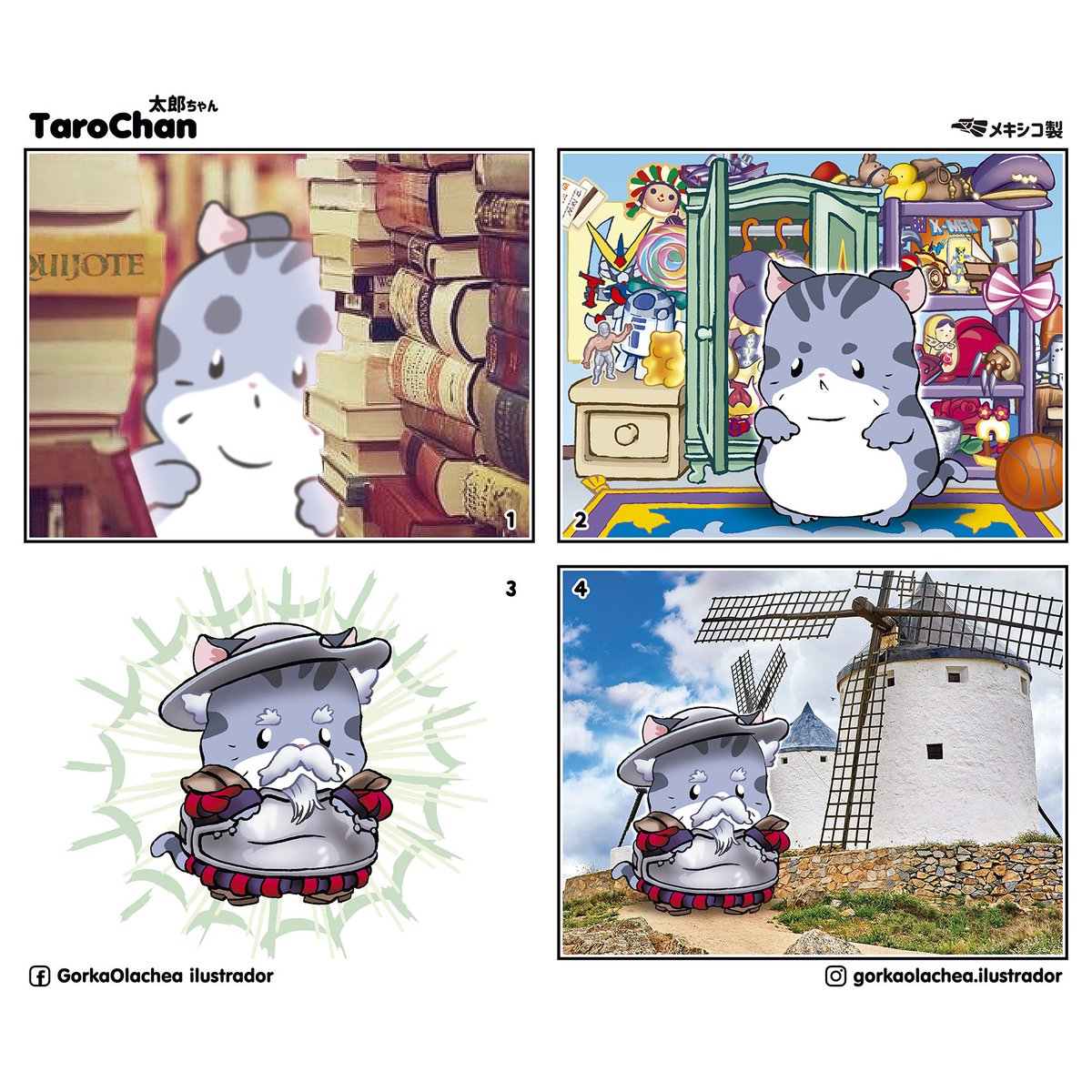 En algún lugar de #LaMancha, #TaroChan, el gatito cosplayer, juega con gigantes. Por favor RT. Más disfraces en: bit.ly/31AHYM8 Sígueme en IG: bit.ly/2WnTjMf #webcomic #cosplayer #gatito #DonQuijote #MiguelDeCervante #España