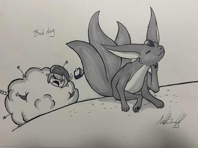 Late FFXIV Inktober Day 21: A bad Carbuncle. #FFXIVART #inktober #inktober2022 #BadDog #Carbuncle #Tataru