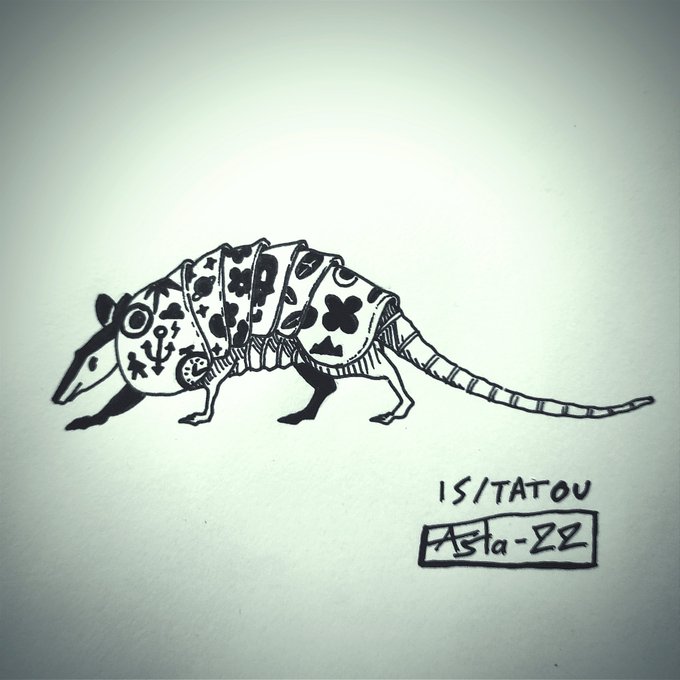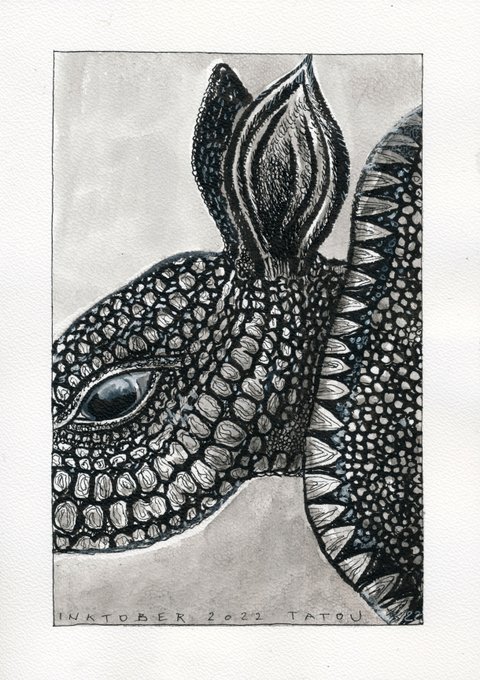 #Inktober du jour 15 sur le thème #tatou Petit tatou avec ses tattoo, t'as tout ! #inktober2022 #armadillo