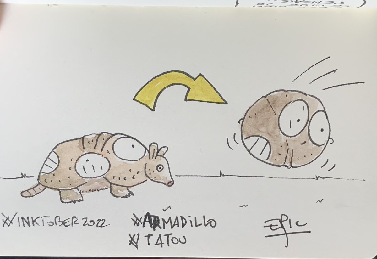Jour 15 de l'INKTOBER ! Le thème du jour : "Armadillo/Tatou"! Il est assez fat, en mode Depardieu 🤣 #Inktober #inktober2022 #armadillo #tatou #cartoon #drawing instagram.com/p/Cjve7ZTqboY/…