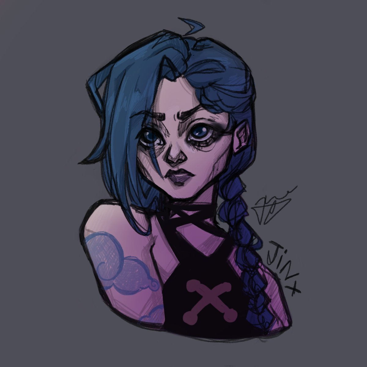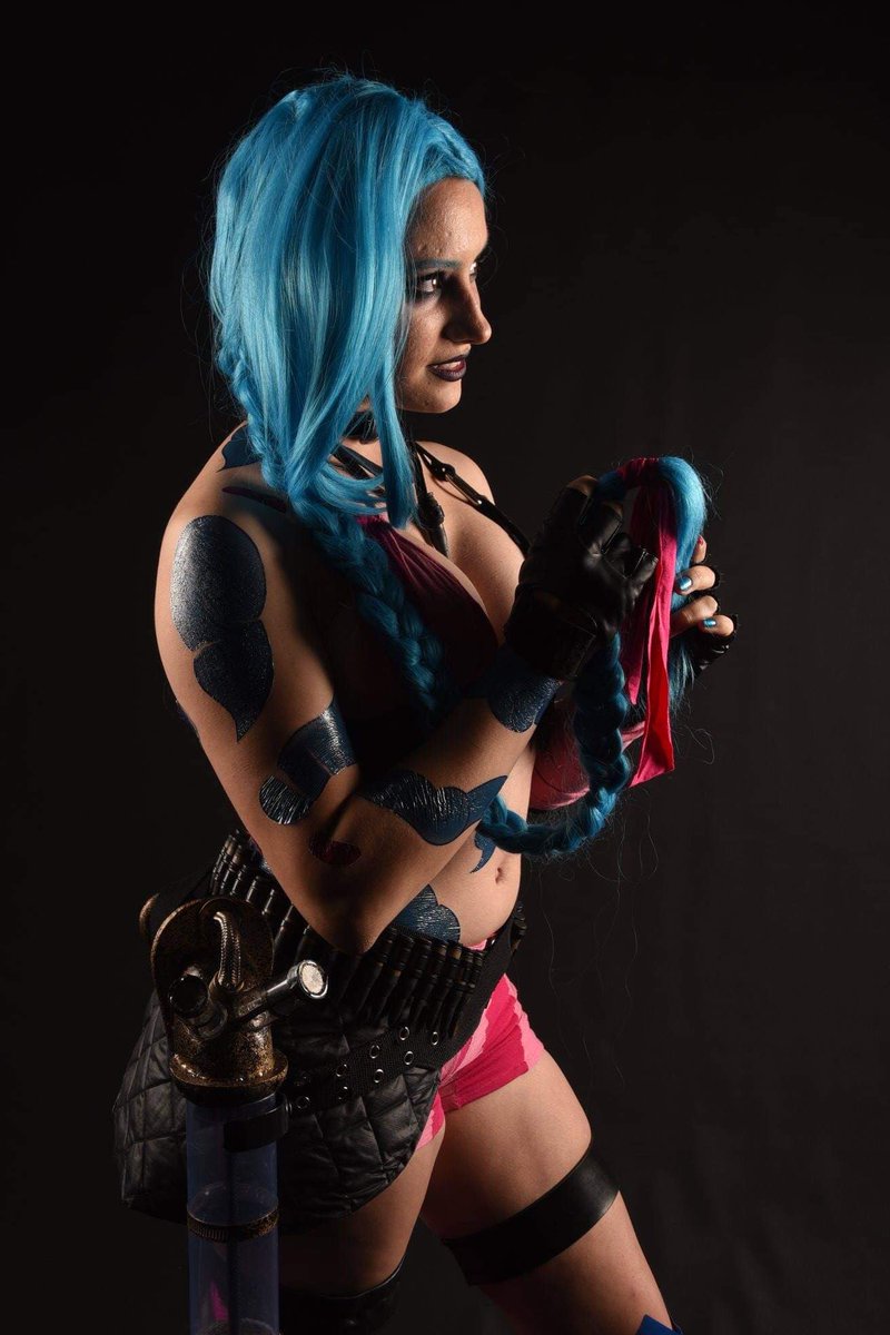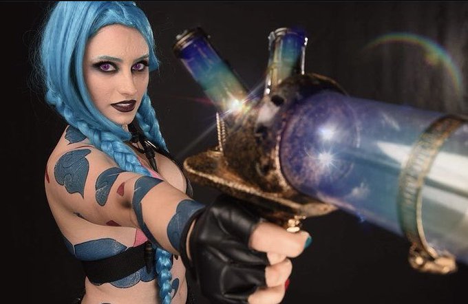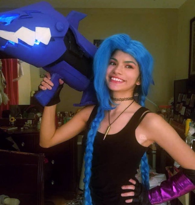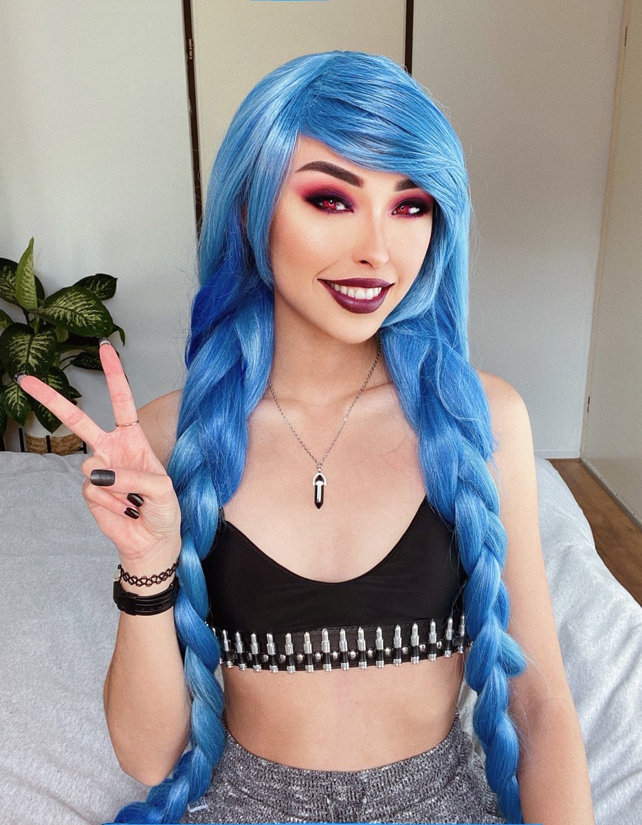 Mais uma foto dessa make improvisada de Jinx de #arcane #TeamJinx #Powder #jinx #Arcane #ArcaneWatchParty #ARCANEDAY #cosplay #RiotXArcane // @LeagueOfLegends @LoLegendsBR @CBLOL @WildRiftBR