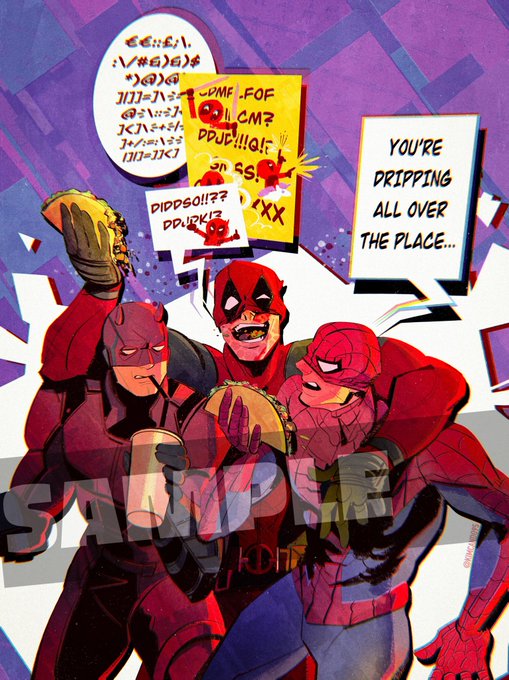 Tons of thank to @stevetonyverse who commission this lovely guys!!!!! Always love to see them hanging out❤️❤️🔥🥰 #TEAMRED #SpiderMan #Deadpool #Daredevil