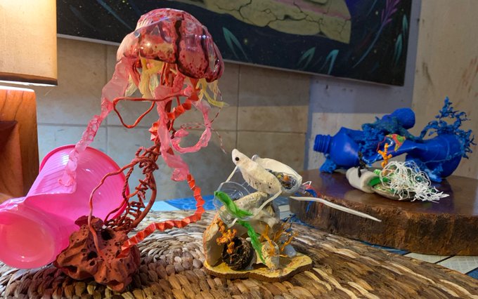 Exhibition of my art inspired by marine conservation and the effects of plastic. #TeamSeas ❤️♻️🤙#CreativeReuse ✨The Roadhouse #Olón 🇪🇨 #Montañita 🌅 @Ambiente_Ec #Involucrate ✨#inART 🐢🐙 twitter.com/Mikiilodeon/…