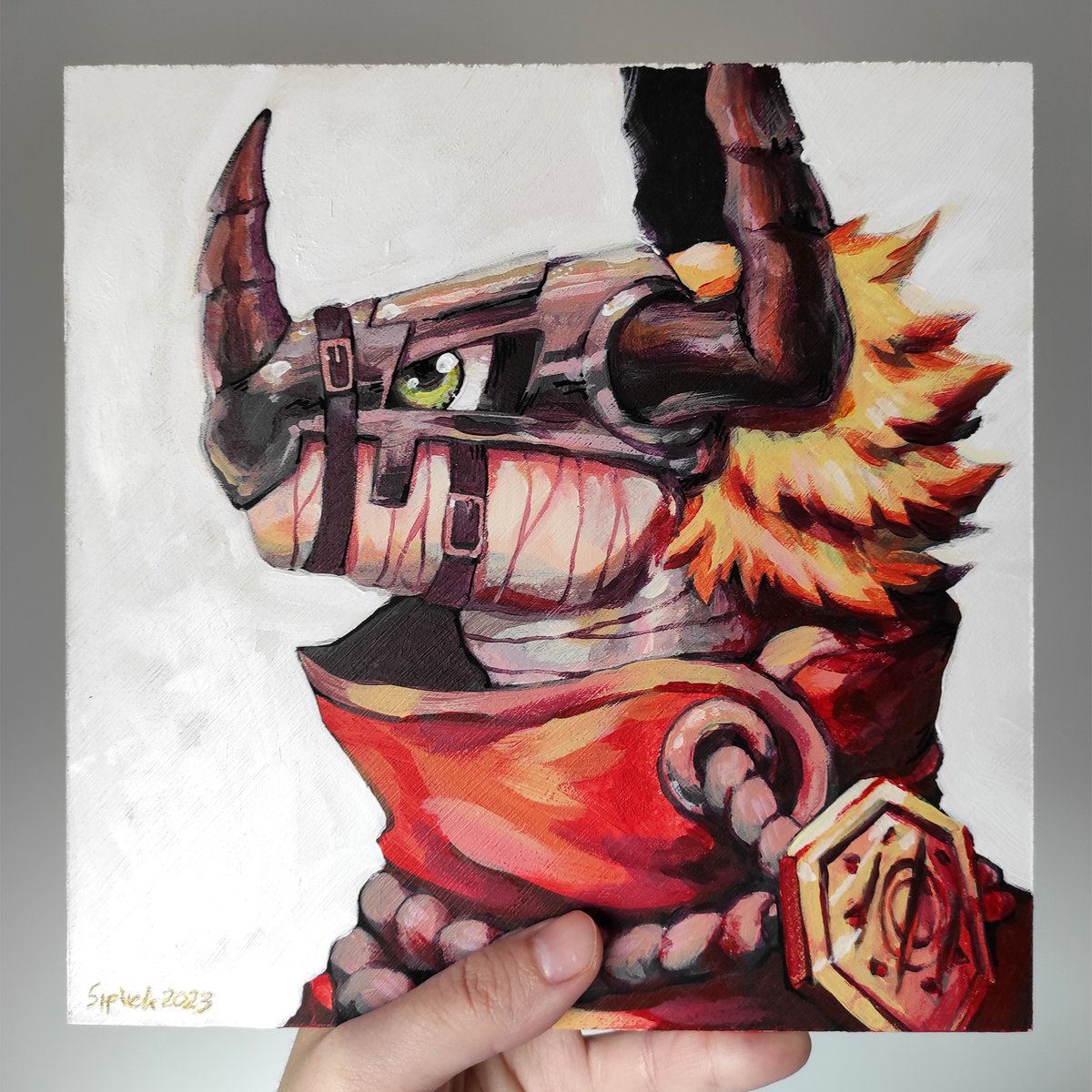 Attack on @SiekonCA! 🖌💥 BlackBrawldramon on a 20cm square board, using acrylics and a black Posca #ArtFight2023 #TeamWerewolves