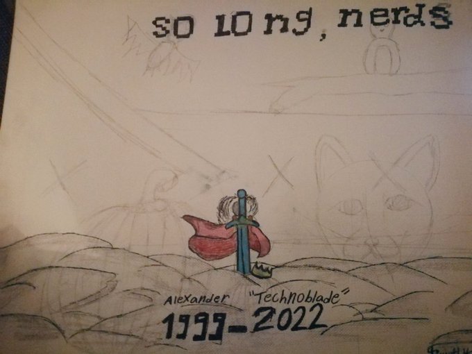 A lot of tears today but I just want to say thank you technoblade for everything, thank you techno’s dad and dream for todays stream. Techno carrying the whole of mcyt on his back, what a legend, Rest In Peace, Alex <3 #Technotober #TechnodadSupport #technofanart