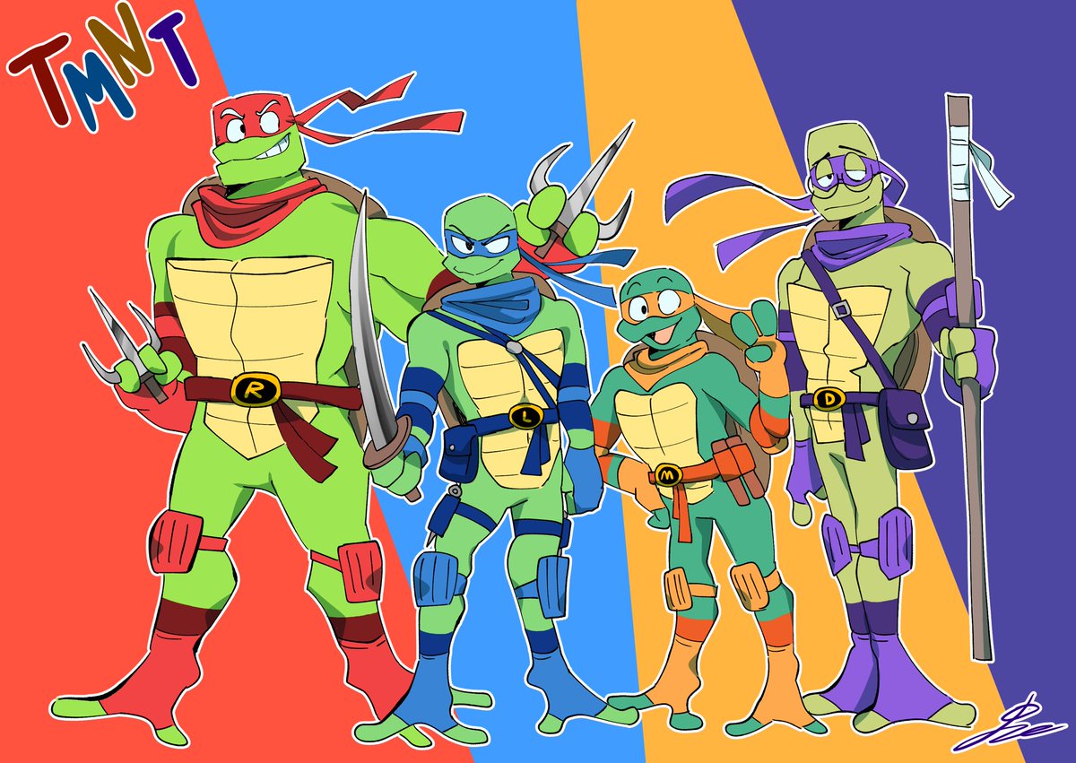 Seeing the new TMNT Mutant Mayhem stuff is REALLY making me want to draw them, but since I don't have any time for that, here's some old Ninja Turtles art. #teenagemutantNinjaturtles