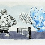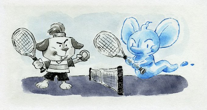 Inktober Day 8 - Match They were finally ready for their tennis match! Who will win?!? #inktober #inktober2022 #pen #ink #inkdrawing #pendrawing #doodle #drawing #sketch #kidart #childrensillustration #mouse #ghost #cartoon #tennis