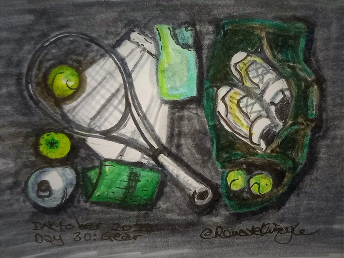 Catching up still on #inktober. Yesterday was #match so I leaned into my #tennis loving family. #inktober2022 #inktober2022day8 #inktober2022match #tenniscourt #tennis🎾 #tennisshoes