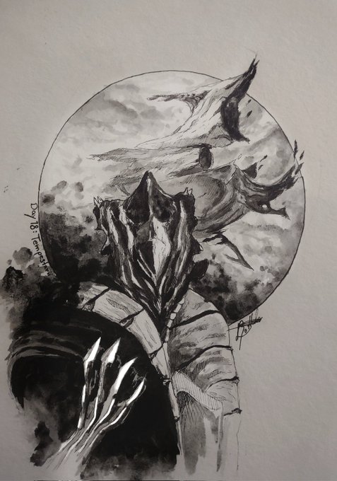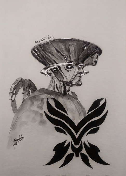 Tennotober Day 20: Teshin...You seek power, you pay in blood Teshin, Master of Conclave and guide for the Tenno to find themselves. 🛤️🎖️ #Warframe #warframefanart #Tennotober #Tennotober2021
