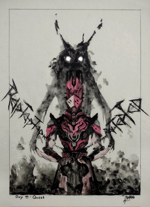 First Day of Quest to Conquer Cancer in Tennotober: Day 11: Quest...Chains of Harrow. I usually don't like pink, so it's a nice challenge! 😎 #warframe #warframefanart #Tennotober #Tennotober2021