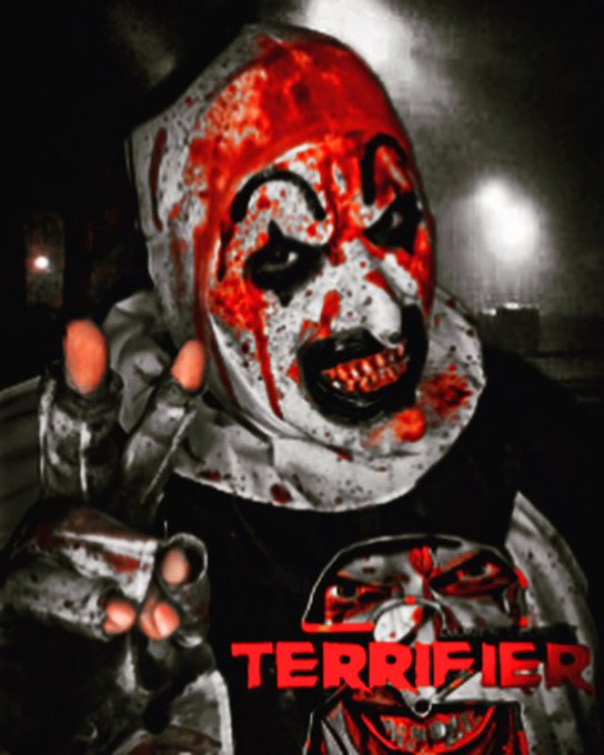 Never gets old seeing my babies out in the wild. Here's my official poster for #terrifier2! And trust me when I say Art is "going to take you to the bank. To the blood bank!" ala Mason Storm!😉 #digitalart #HorrorMovies
