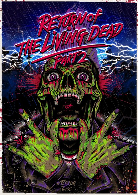 Here’s my #TerrorTwos art! I opted for the bone crunching punky gore-fest: Return Of The Living Dead Part 2. Mixing the undead with high voltage electricity and Trioxin infused rain equals instant undeath! 💀⚡️ #halloween2021