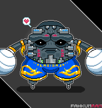 Pixel art of FahkumRAM from Tekken. What's his favourite food? Chips! :) #fahkumram #tekken #tekken7 #nbgi #namco #bandai #BandaiNamco #namcobandai #joke #pixelart #pixel #humor #muaythai #kickboxing #thai #ram #chip #ramchip #computerchip #arcade #playstation #ps4 #parody