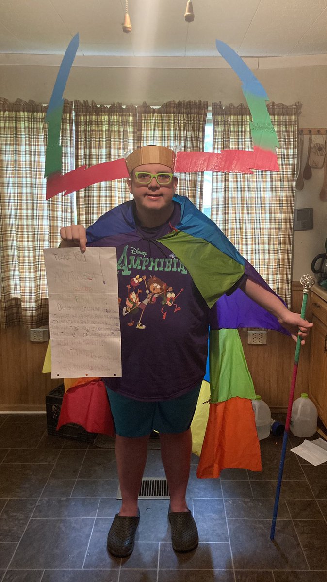 @RoundtableVids @AwestruckVox This is my ultimate cosplay I did for the last Amphibia fan spotlight. i made a new rainbow cape and a big paper that will thank the Amphibia crew and the VAs for the best show ever (zoom in). I hope you like it. #Amphibia #Cosplay #ThankYouAmphibia