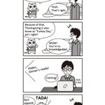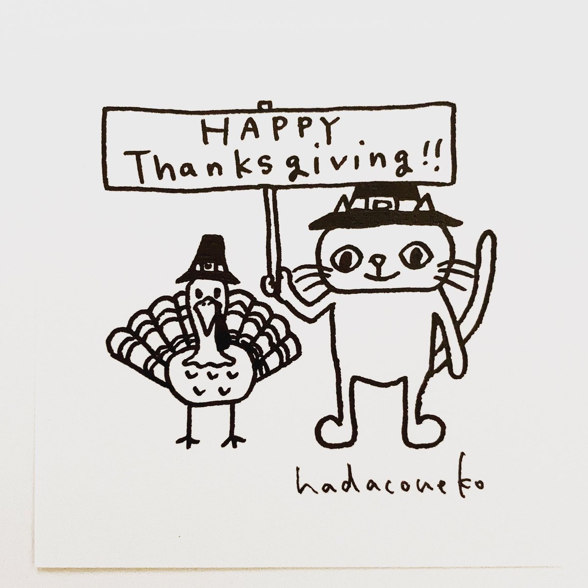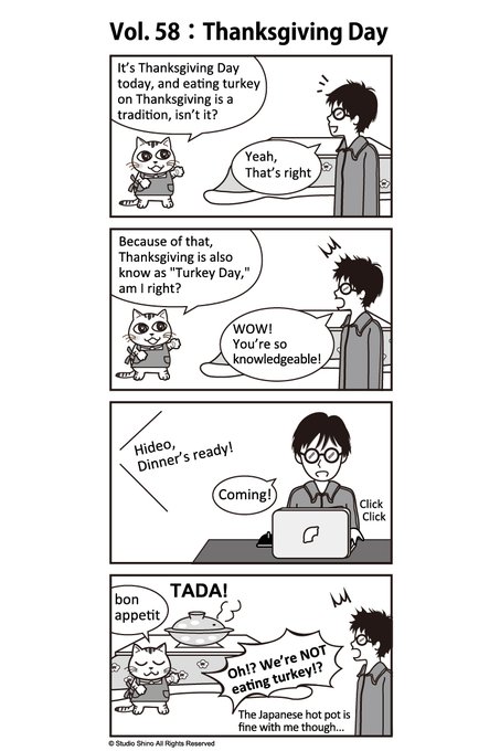 Hi everyone, Happy Thanksgiving! #Thanksgiving2021 #manga #comic #ArtistOnTwitter #美術ネットワーク #芸術の輪 #英語学習 #アトリエの系譜3 #絵描きさんと繋がりたい #猫好きさんと繫がりたい #4コマ漫画
