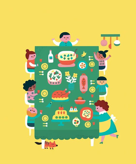 🍁Happy Thanksgiving! 🍁 Illustration by #HsinpingPan, represented by @lillarogers Studio. #LeadwithGratitude #DIGathering #gratitude #gathering #thanksgiving2021 #happythanksgiving #grateful #thankful #givethanks #turkeyday #holiday #festive #dinnertable #illustration #art