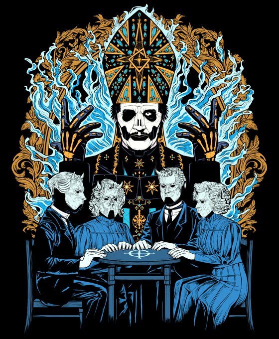 This is a fanart for GHOST I haven’t shown on the web. It is inspired by a magician from Rider Waite Tarot. I love tarot inspired pieces. I'd love to draw such things even if it's not GHOST. this is a #fanart, not an official design. #thebandghost