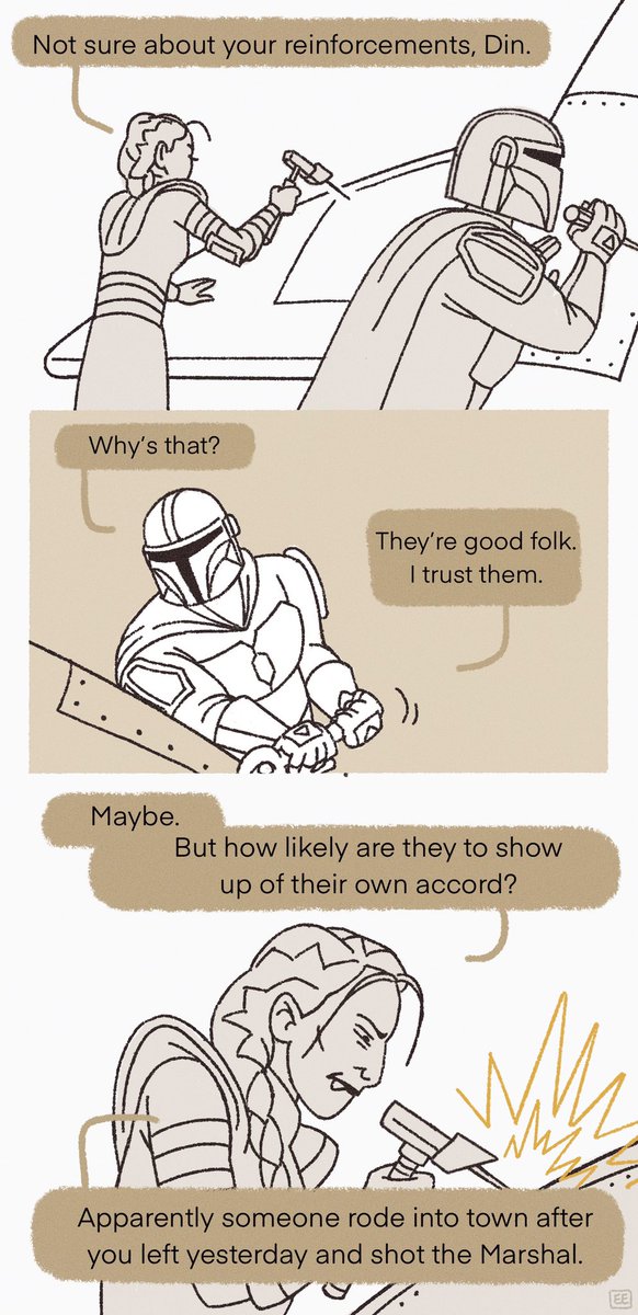 Here it is, the comic I’ve been working on for 3 weeks! Hope you enjoy ♥️ It’s set after ep6 of TBOBF (ep7 was a disaster lol so take this instead) 1/3 #TheMandalorian #dincobb #TheBookOfBobaFett