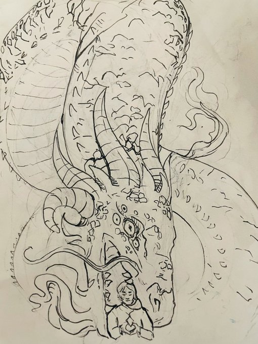 #TheElderScrolls #Inktober 9+10 Akatosh and Lorkhan, (with the mortals who got closest to them) Beginnings and Endings. Two sides of a coin.