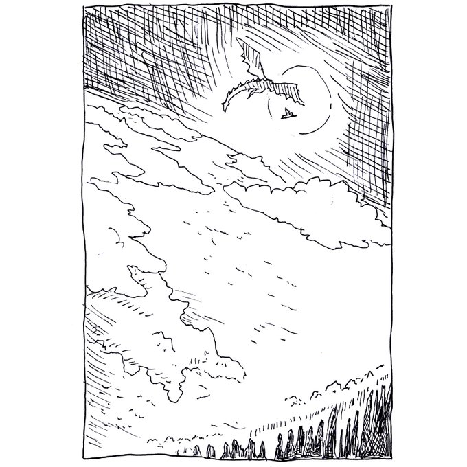 In today's #Discworld #Illustration, the #dragons leave the disk. #TerryPratchett #guardsguards #Ankhmorpork #theend #PenandInk #magic #illustration #seattleillustrator