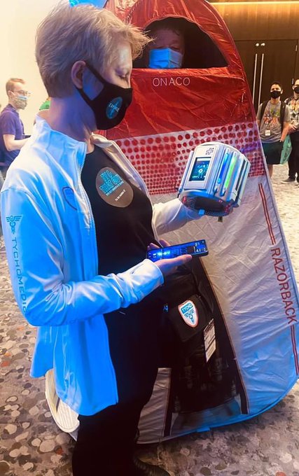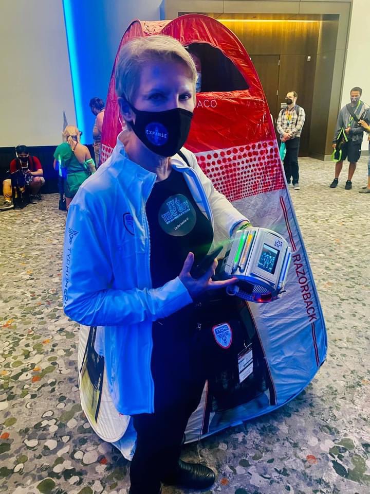 Great ##TheExpanse cosplays at @NY_Comic_Con by @Isonomist as Tycho Station doctor & @osiramon as the Razorback pilot. ( or quarantined patient?😆). Autodoc device by @WebKarls #screamingfirehawks #cosplay