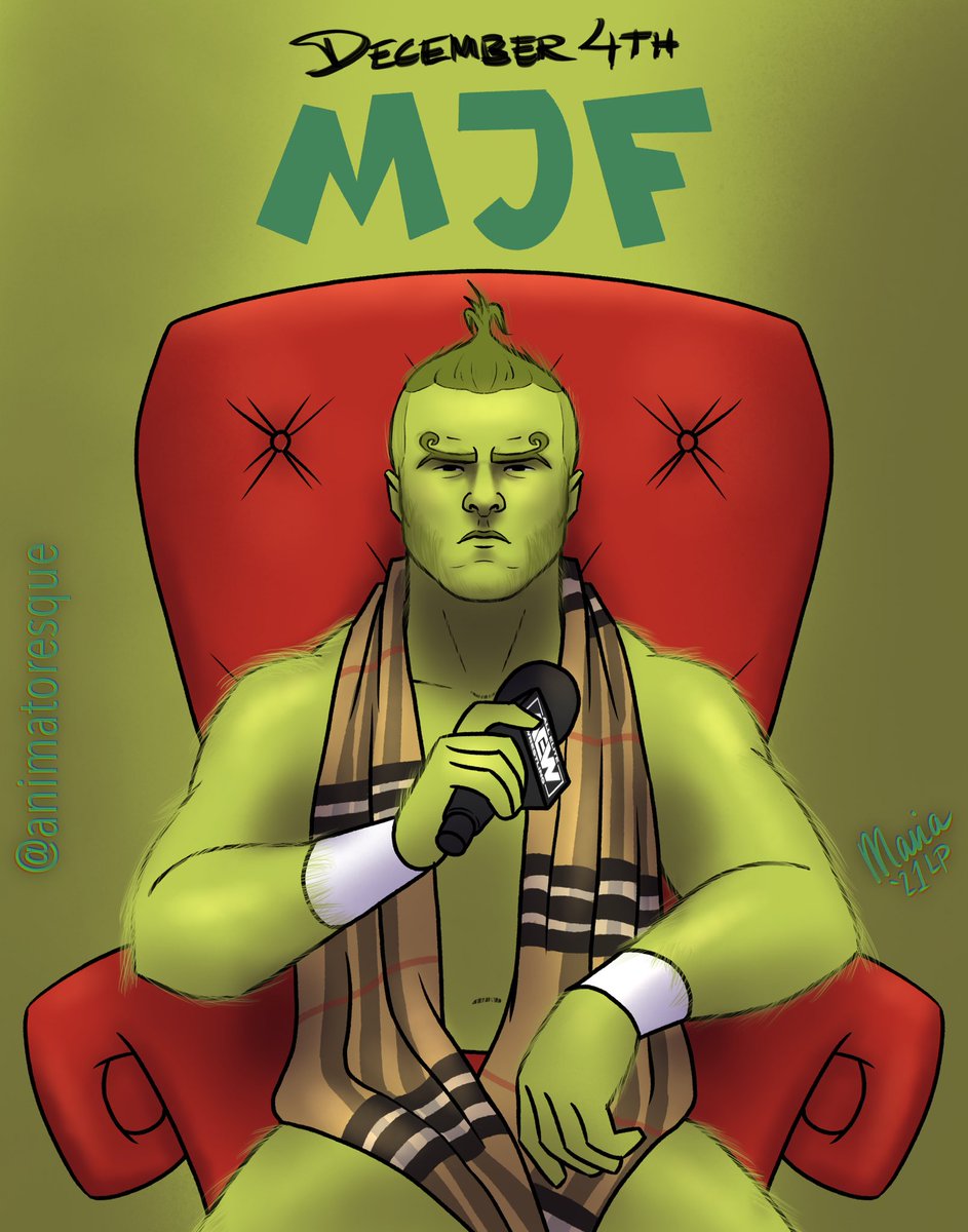 Advent calendar December 5th drawing challenge prompts are the Grinch and @The_MJF Happy Hanukkah… idea: @Luvs2Dream82 💚 #aew #aewdynamite #aewfanart #fanart #thegrinch