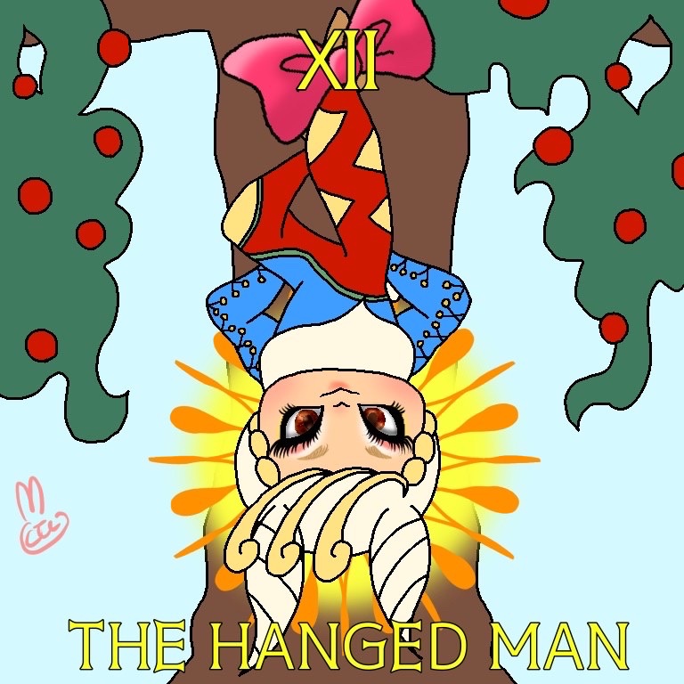 🔮タロットカードシリーズ🔮 『Ⅻ:The Hanged Man(吊るされた男)』 世界一元気なハングドマンが火曜日をお知らせします➰🤸🏻 #イラスト #タロットカード #タロット #うさぎ #奉仕 #献身 #みんなで楽しむTwitter展覧会 #illustration #art #thehangedman