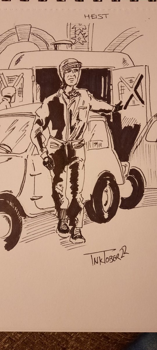 #inktober2022day22 #Inktober hint today Heist - almost the perfect heist #theitalianjob #selfpreservationsociety @themichaelcaine "hang on lads... I've got an idea..."