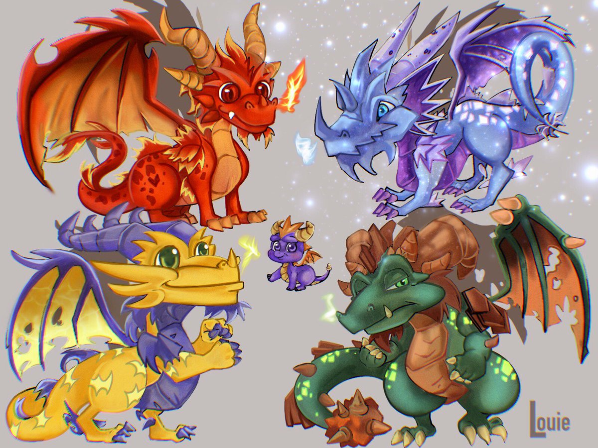 The four dragon guardians! in my Chibi style. Ignitus, Cyril, Terrador, Volteer, and Spyro!❤️💙💚💛💜 #TheLegendofSpyro #SpyroTheDragon #Spyro