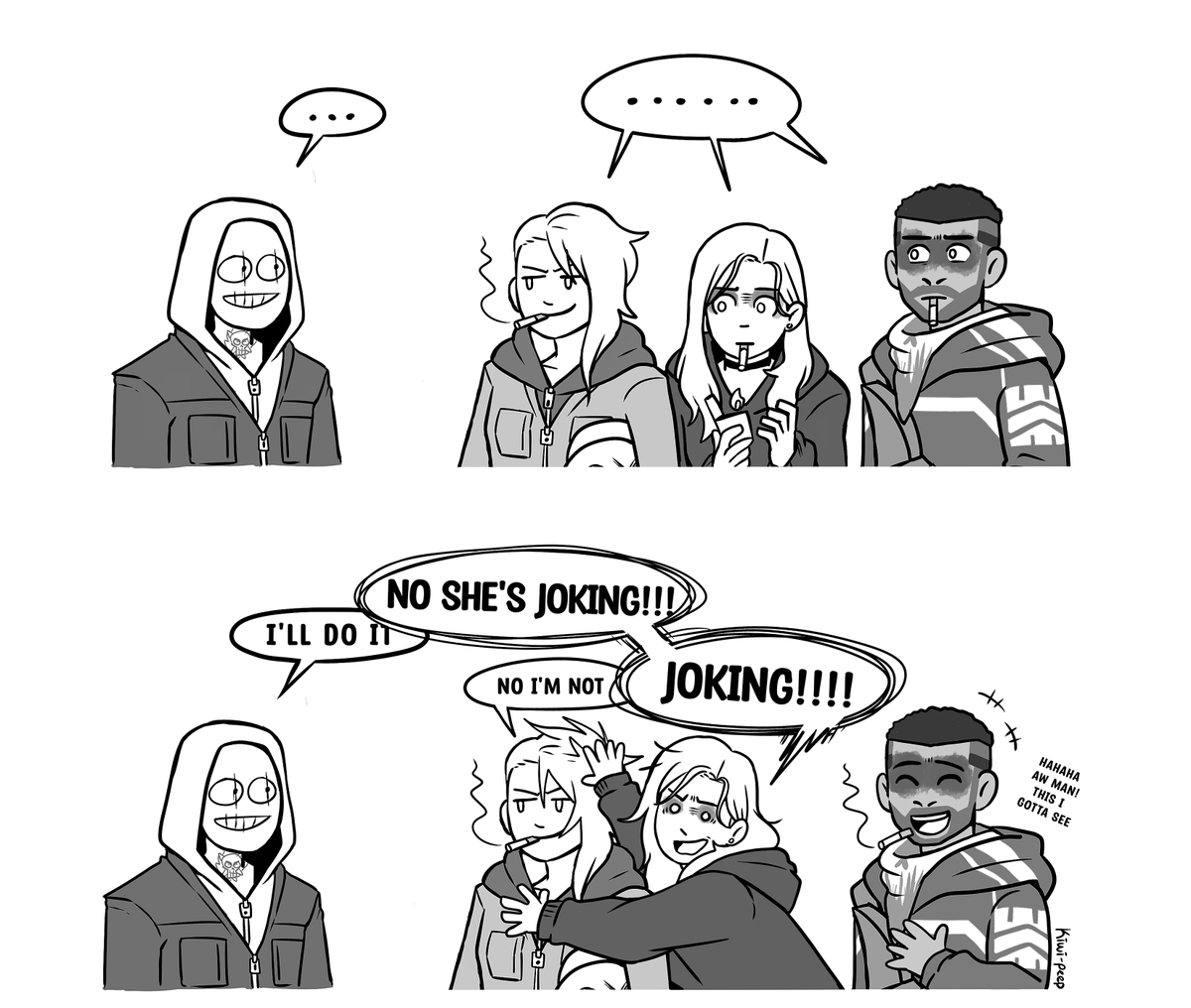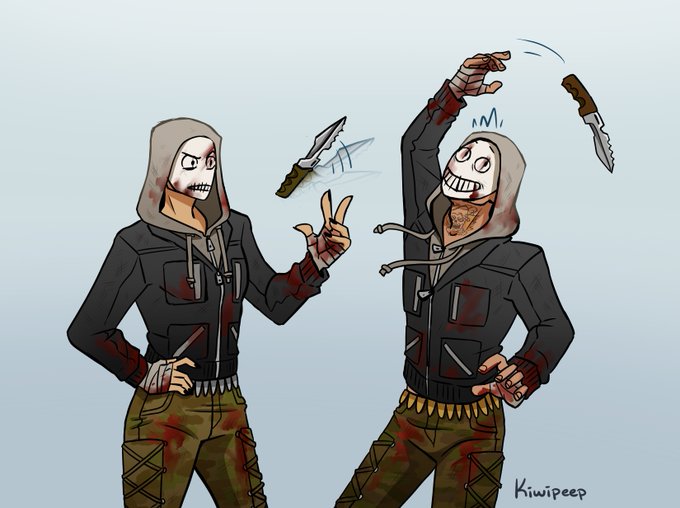 Frank's still learning This is based off of the legion mobile trailer where it shows Julie effortlessly twirling her knife, so I feel like she's probably the best at knife flipping #dbdfanart #thelegion #DeadbyDaylight