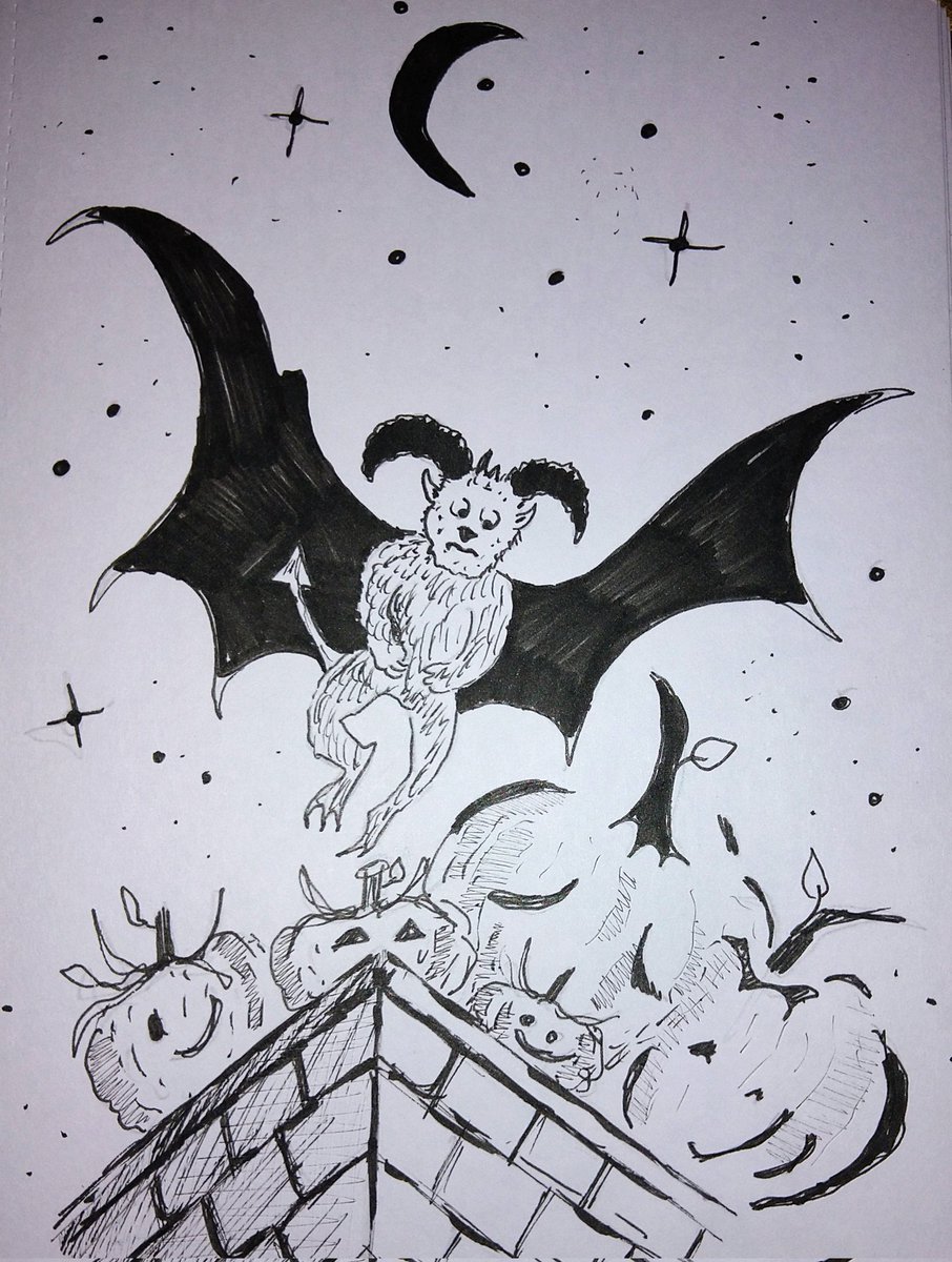 Todays #sketch #TheNaughtyPumpkins are #Scurrying away from the angry #gargoyle #inktober2022 #Inktober #INK #pumpkins @inktober 🎃🎃