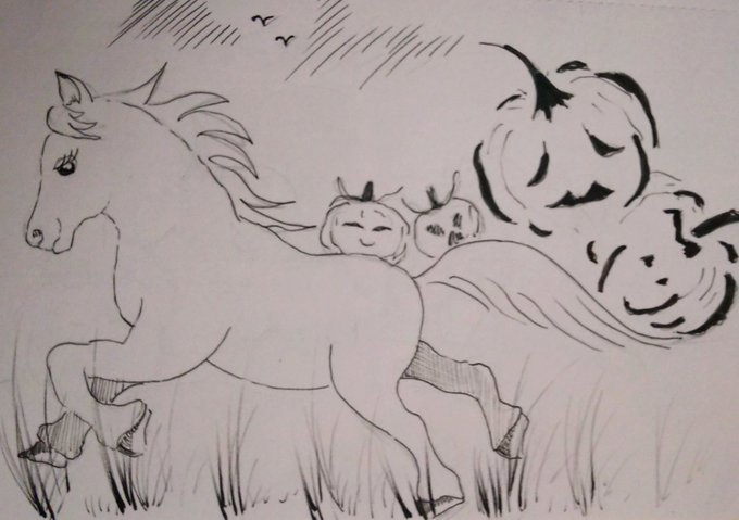 Todays #sketch #TheNaughtyPumpkins have been rescued by a #Ponytail Hope they are holding on tight .... 🎃🙃🎃🙃 @inktober #inktober2022day19 #INK #Inktober #drawing #ArtistOnTwitter #Artists #illustration