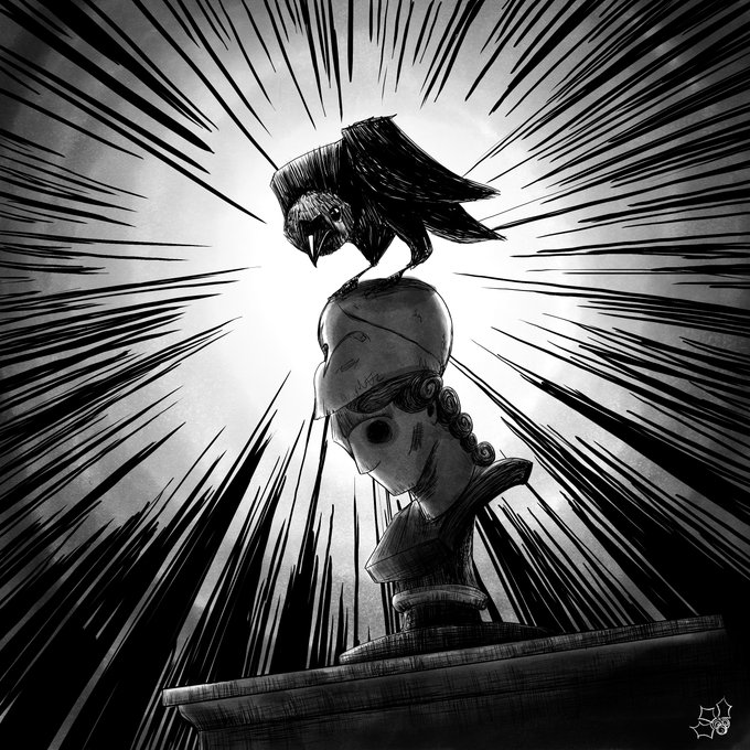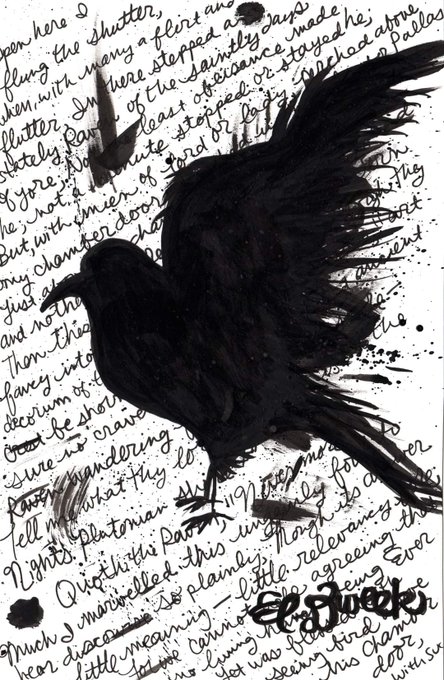 And the Raven, never flitting, still is sitting, still is sitting On the pallid bust of Pallas just above my chamber door; #inktober2021 Day 5 is raven! #theraven #edgarallanpoe
