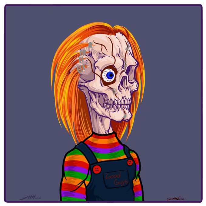 "Good Guy" scary art by @OdariArt another Iconic #Skully Character now part of the #TheSkullyverse! Find the Skullys you want in your collection! skullyseries.art/nft.html #SkullyTuesday #Skully #Skull #CharacterArt #CharacterConcept #Illustration #2D #NFT #NFTCollection