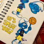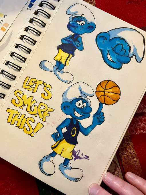 Son: My basketball team like my name suggestion, The Smurfs! Son: Could you draw me as a Smurf, Mom? Me: As you wish. #TheSmurfs #momlife #retroartist #ArtistOnTwitter #sketchbook #typography
