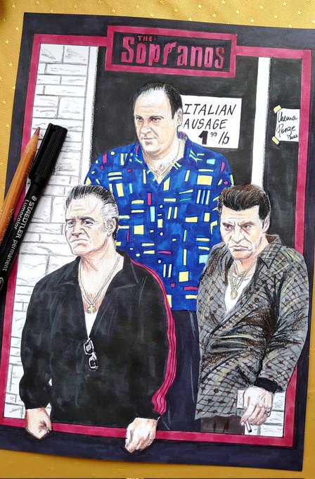 "LOS SOPRANO" Buenos días y feliz semana. Si la semana pasada la comenzábamos con la ilustración de "Drácula", hoy toca estrenar un nuevo encargo sobre una serie que tiene muchos adeptos y fieles, Los Soprano. Espero que os guste.😉✍️ #art #TheSopranos